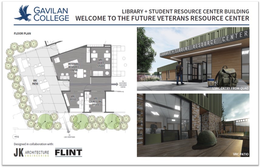 As an example of this commitment, I'm very excited to present the design of our future Veterans Resource Center. This new center will be part of our new Library Student Resource Center. It includes two offices for support staff, a resource center space, a quiet study room, and a dedicated patio for our veteran and military students. Construction is scheduled to begin next year and is expected to open in 2025.