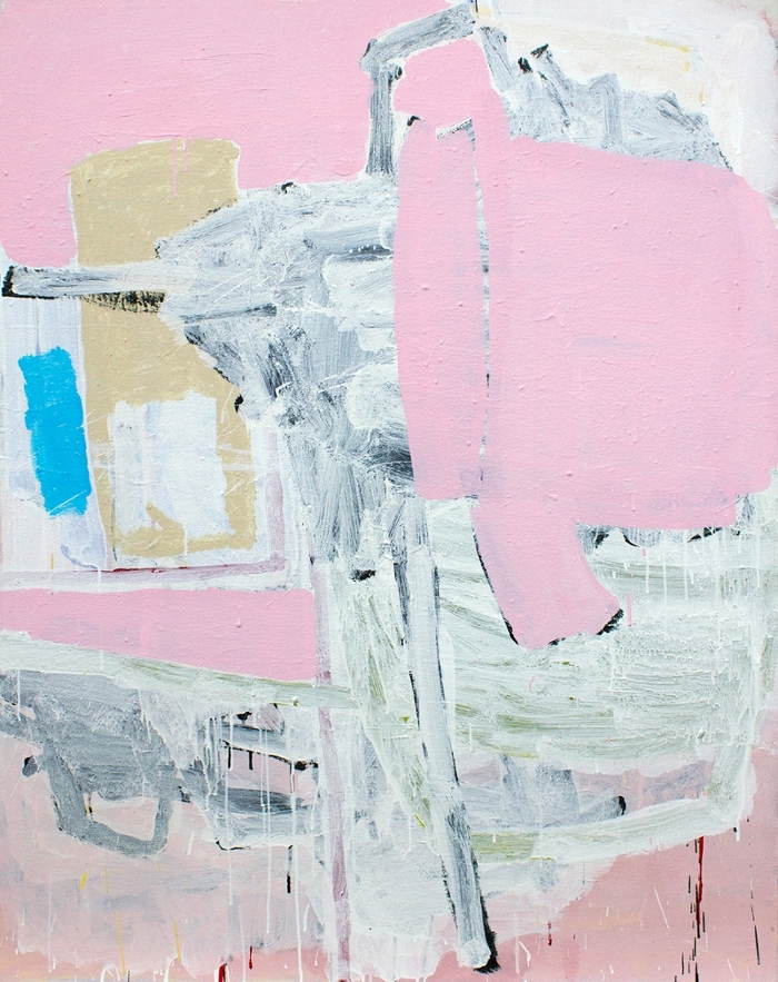 Their abstract paintings share a raw, tactile sensibility, and an interest in materials and mark-making. Painting as process is central to both artists, with its inherent flaws and failures. Their work reveals the act of constructing an image through layering, obfuscation, destruction and construction.