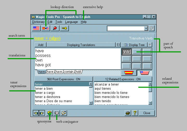 | It has a Spanish Thesaurus |