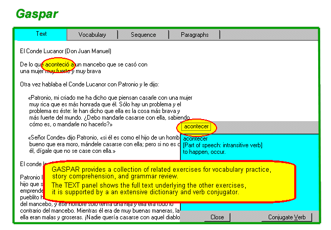 | Here you will find Gaspar, the Gavilan Spanish Review program, online literature, an