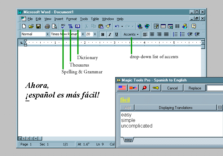 online Spanish dictionary, MS Word with Spanish spell check and thesaurus, and more. |
