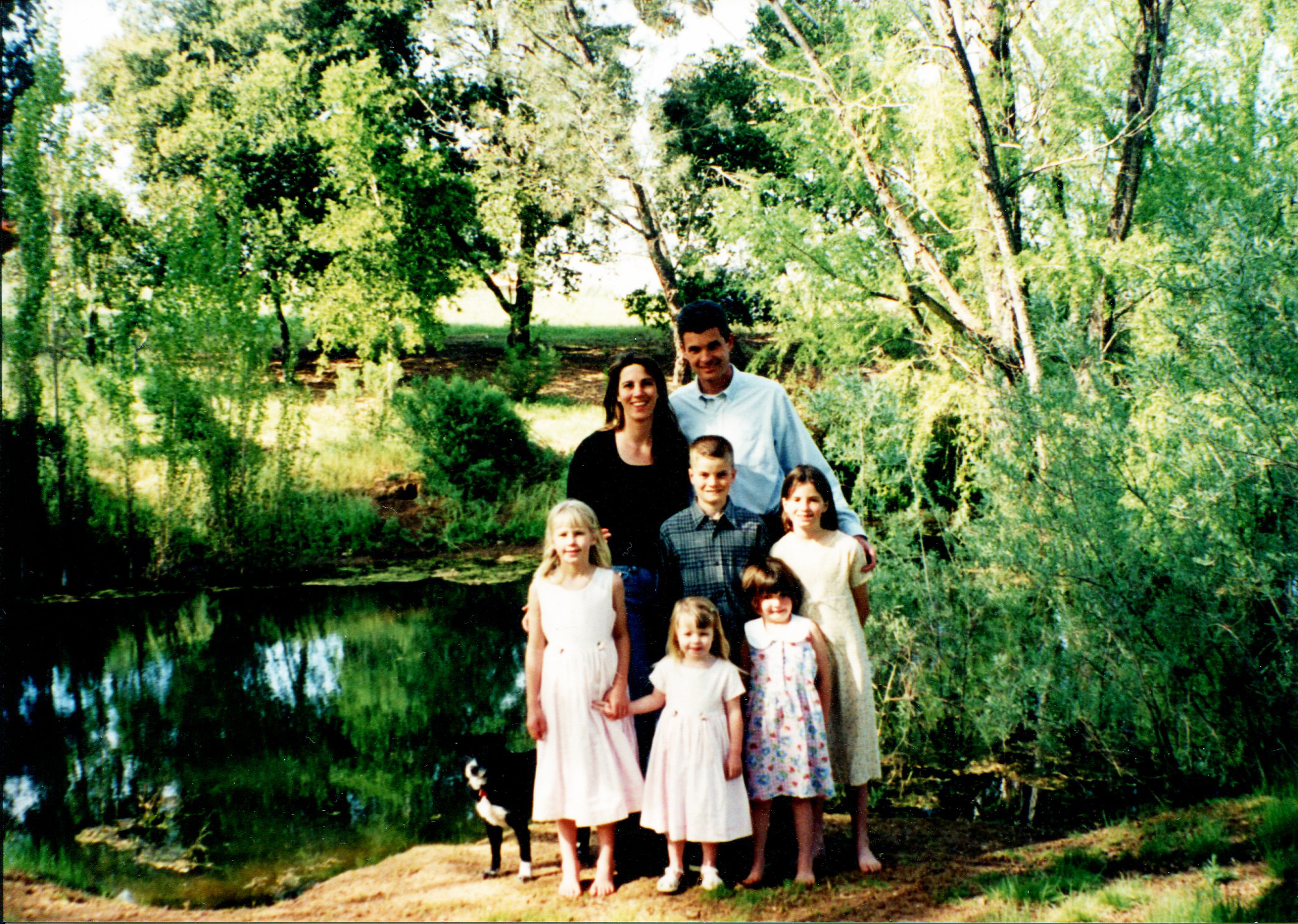 and Katie, along with their dog Jody, visiting the lower pond to feed the ducks.