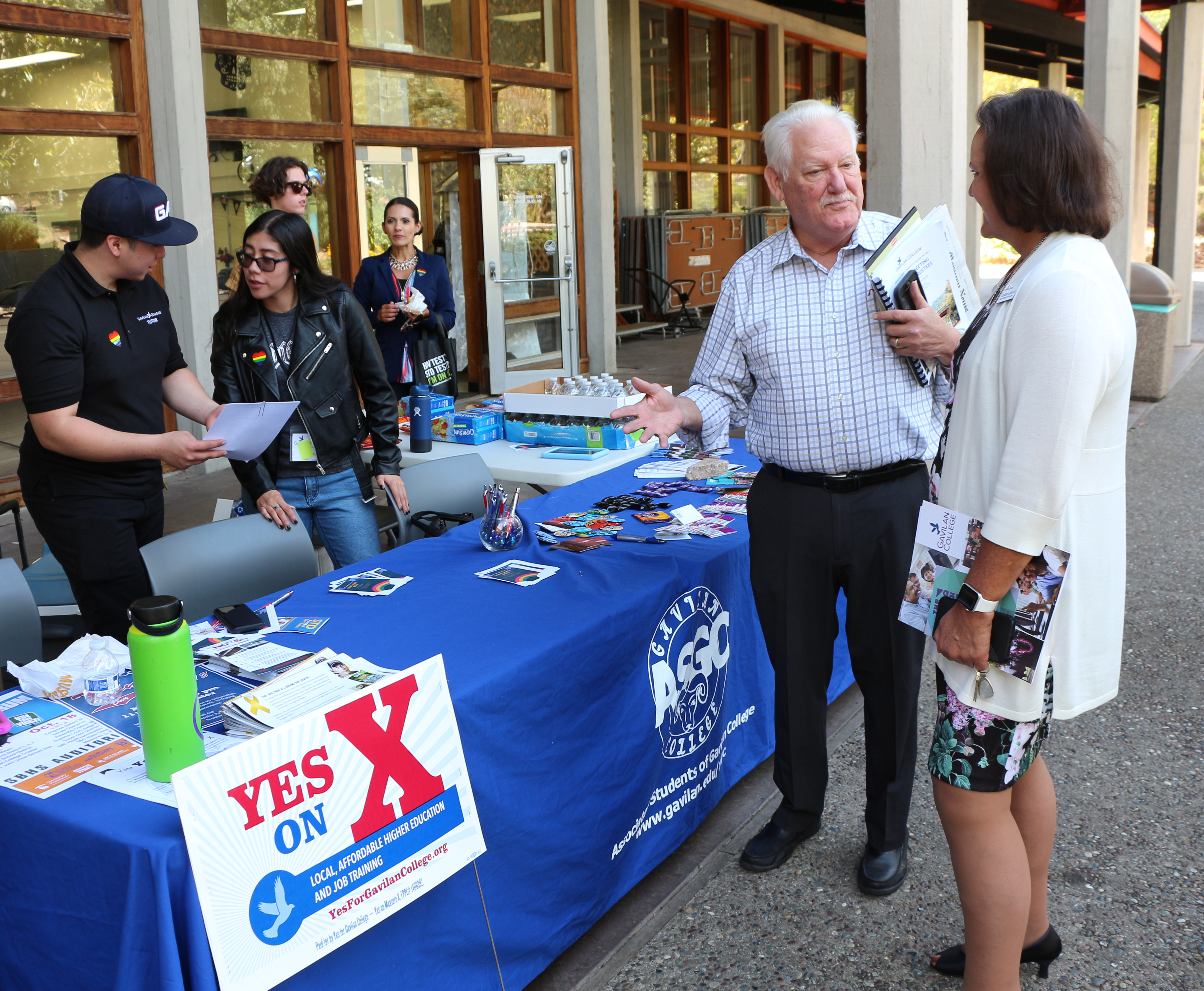 ASGC leaders tabled an event on campus as Dr. Kathleen Rose chatted with Trustee Walt Glines.