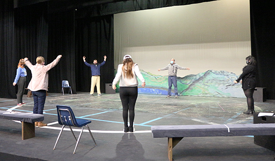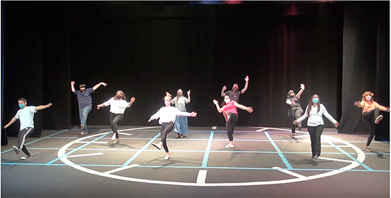 The theater program is one of a handful that was approved for in-person classes. Large ensembles now meet as groups of 10, and students and faculty adhere to COVID-19 safety protocols.