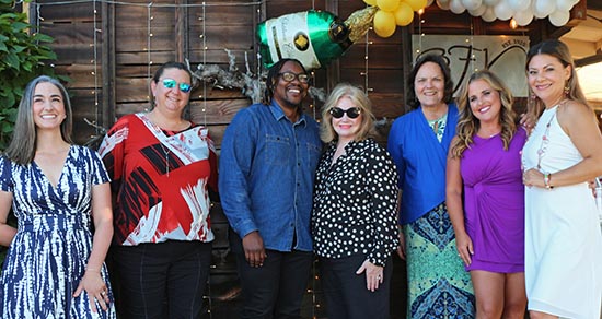 Crystal Zamora, second from right, invited friends and family to join her at Bubbly and Bags to celebrate her birthday, saying, “We’re here for the music and the fundraising!”