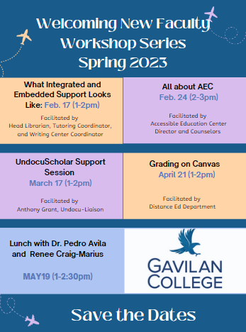 February 17th (1-2 pm) What Integrated and Embedded Support Looks Like-Head Librarian, Tutoring Coordinator, and Writing Center Coordinator
