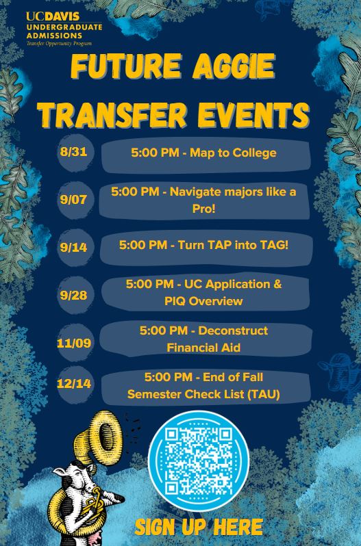 Transfer Applications for FALL 2026 Admission are due Monday, December 1, 2025 or by University / Program. Visit UC Apply and CSU Apply for more information.