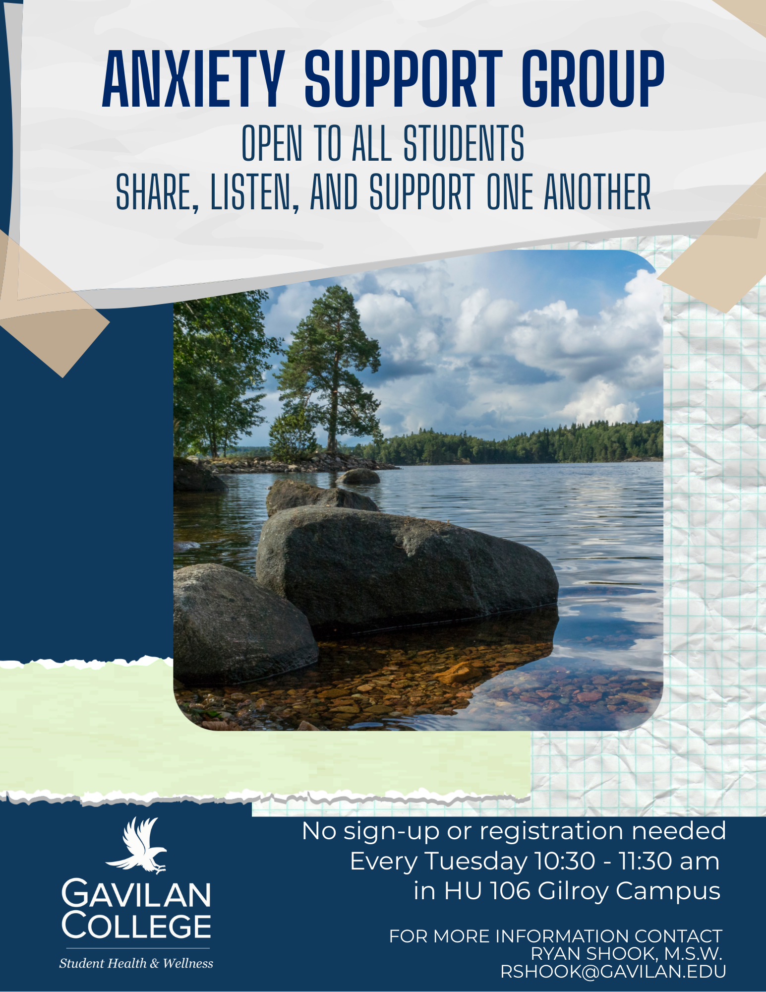 | Gavilan College offers emotional wellness and therapeutic support to all currently registered students for free. Use the emotional wellness self-referral form to request an appointment or visit the Counseling website: www.gavilan.edu/counseling | |||