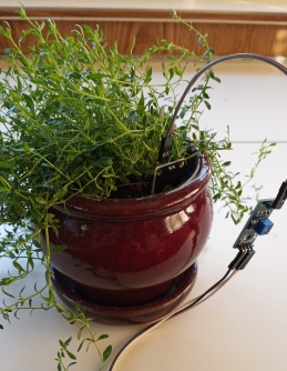 STEM Clubs have projects for students; this is a plant being tested with temperature sensors from one of those projects from the GEAR Club.
